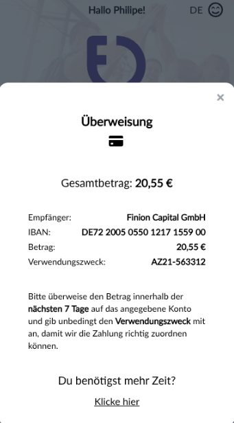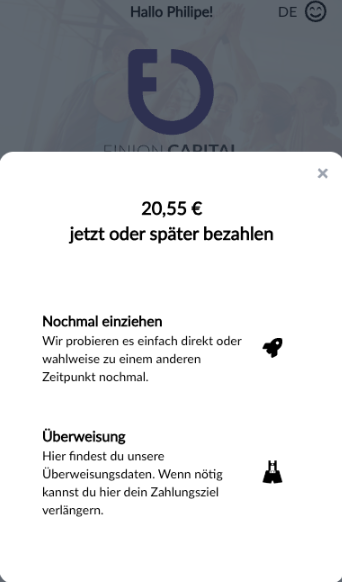 Yes, you have the option to extend your payment deadline via our payment portal (customer portal). To view the portal in English, simply switch from DE to EN in the top right-hand corner.